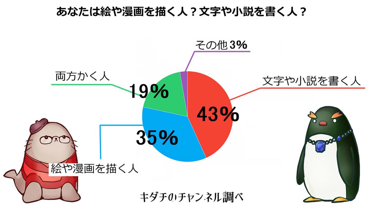 少し前に似たアンケートをとった時はほとんどが文字書きさんだったので、絵のリスナーさんが増えてきたという感じでしょうか。